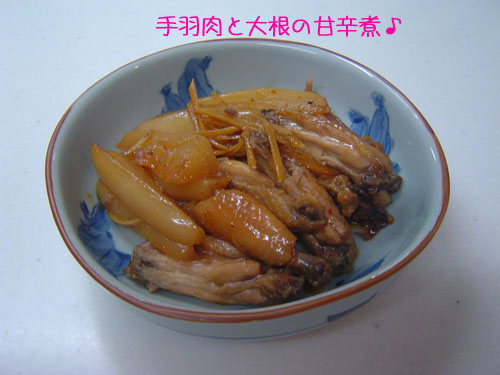 中火でゆっくりと手羽肉をごま油と生姜にからめな